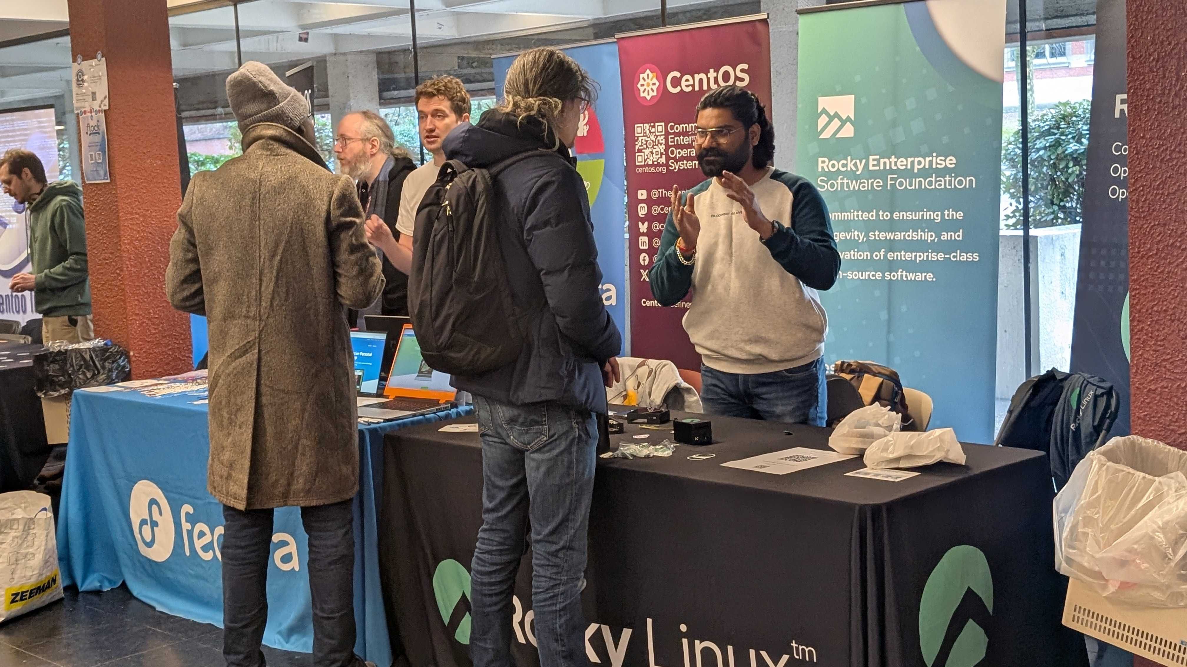 During FOSDEM, the Rocky Enterprise Software Foundation (RESF) had a booth to represent the open source enterprise operating system project Rocky Linux. It is always a pleasure to speak with the community. Many of the core Rocky Linux and RESF board members were present. As attendees came to visit, they were excited to see us there and to grab some swag.
